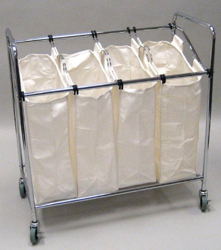 This commercial quality 4-bag laundry sorter from Whitney Design features a heavy duty chromed tubular steel frame. The 4 laundry bags are made from heavy weight canvas and are machine washable. Each bag is removable. The wheels are 3" industrial wheels of which two are locking. It measures 33.75" wide x 33" in length x 16.75" in width. Item #3024